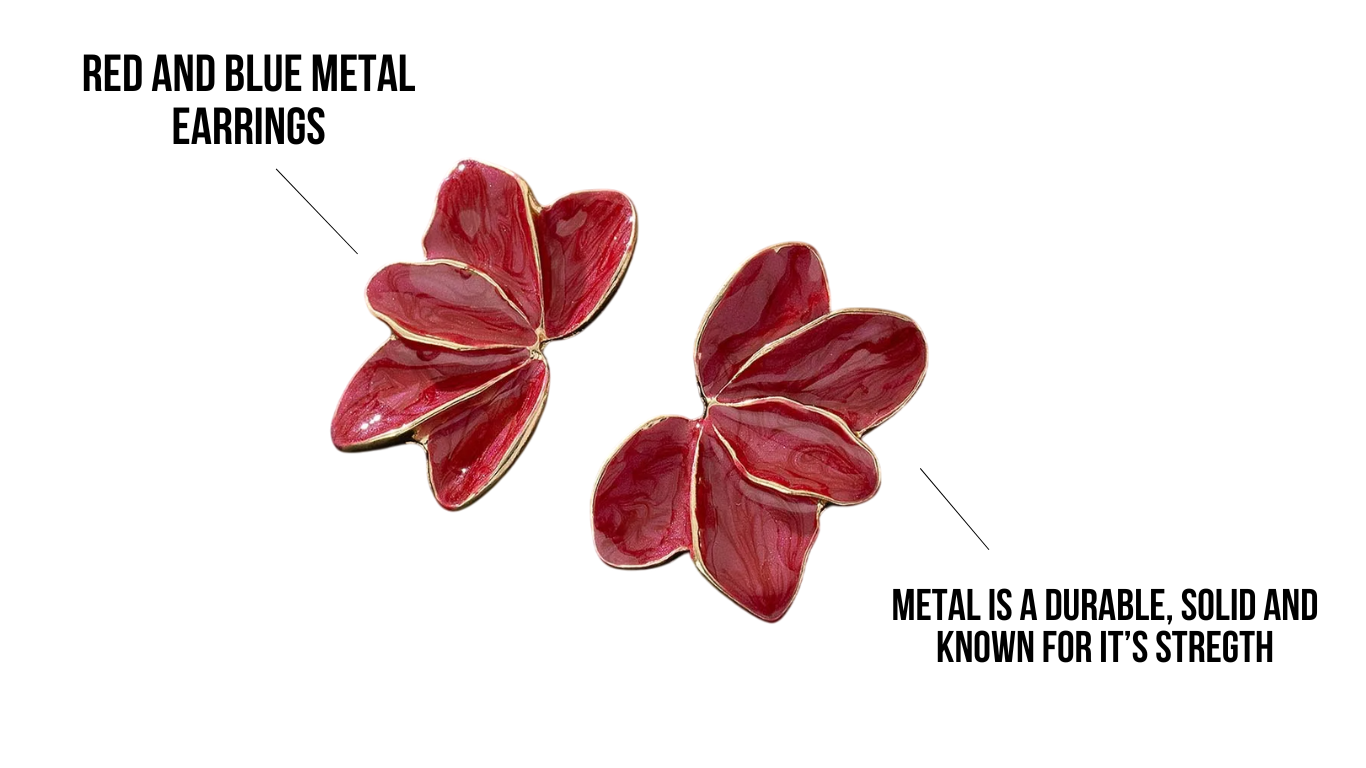 Add a bold touch to your style with these striking red and blue metal earrings. Lightweight yet durable, they feature vibrant tones that stand out beautifully, whether paired with casual outfits or evening looks. Designed to be eye-catching and comfortable for all-day wear, these earrings bring a perfect mix of color and elegance.