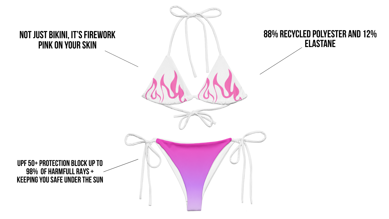 Crafted from 88% recycled polyester and 12% elastane, this piece combines eco-friendly materials with a luxuriously soft, stretchy feel for all-day comfort. Designed with UPF 50+ protection, it effectively blocks up to 98% of harmful rays, keeping you safe under the sun. The adjustable, tieable strings ensure a perfect, customizable fit, while the premium-quality fabric offers durability and style. A sustainable choice that doesn’t compromise on comfort or elegance.